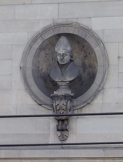 La façade nord-ouest comporte trois bustes.